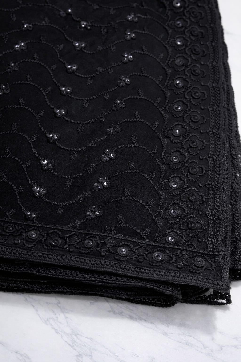 Premium quality georgette dupatta featuring fine thread embroidery with beautiful sequence work all over. The elegant floral pattern and detailed border give a rich and graceful look, perfect to pair with suits, kurtis, and ethnic wear. Lightweight, soft, and easy to carry for party wear, festive wear, and special occasions.