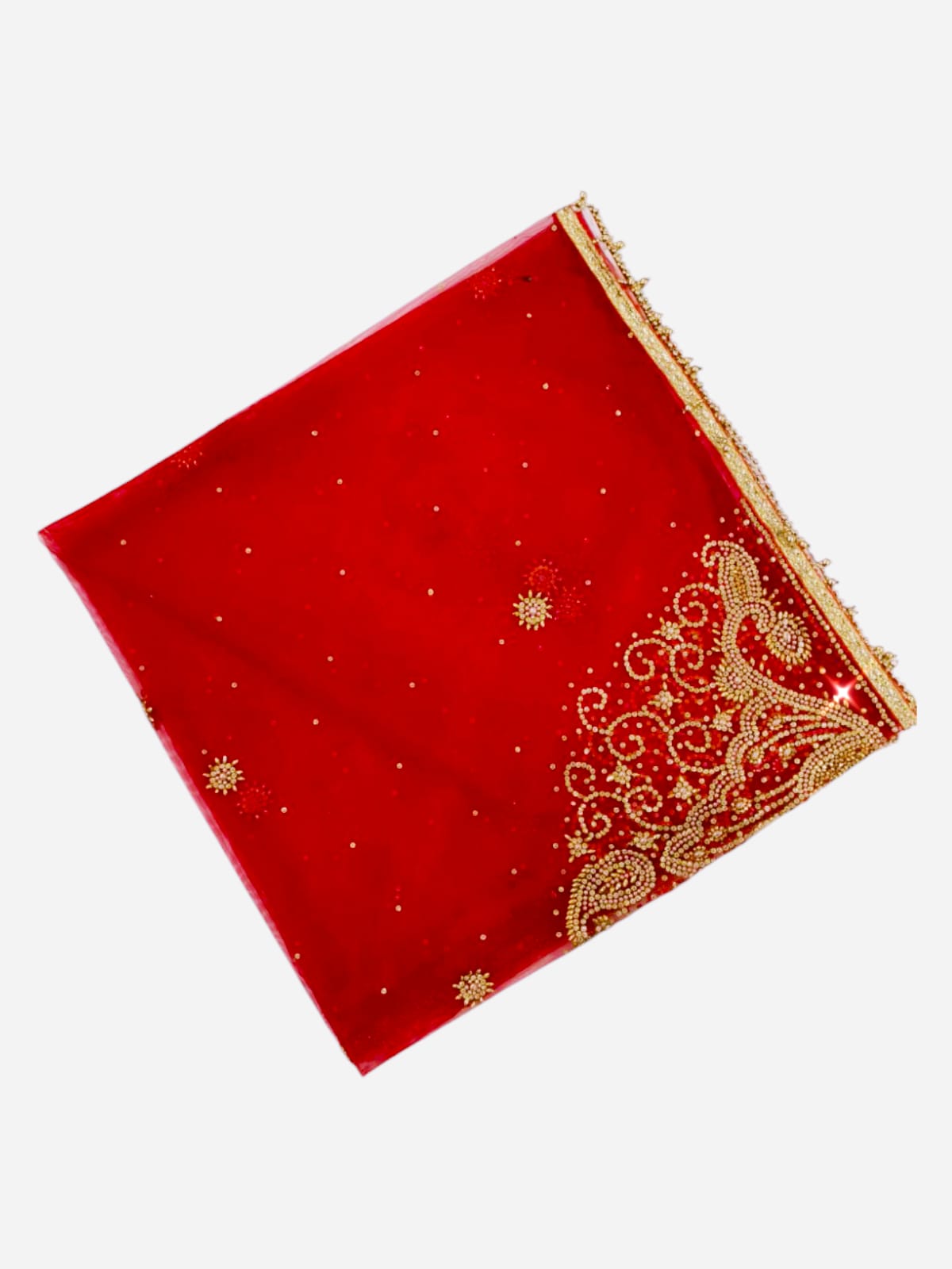 Red Bridal Heavy Stone Work Dupatta with Golden Embroidery